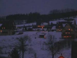 The Germans do it right. Whole towns, cities and villages are decorated for Christmas. Genteely. Softly. Beautifully. Electric “arches” in the windows cause a soft glow to fall on the snow and streets. The photo doesn’t do it justice…