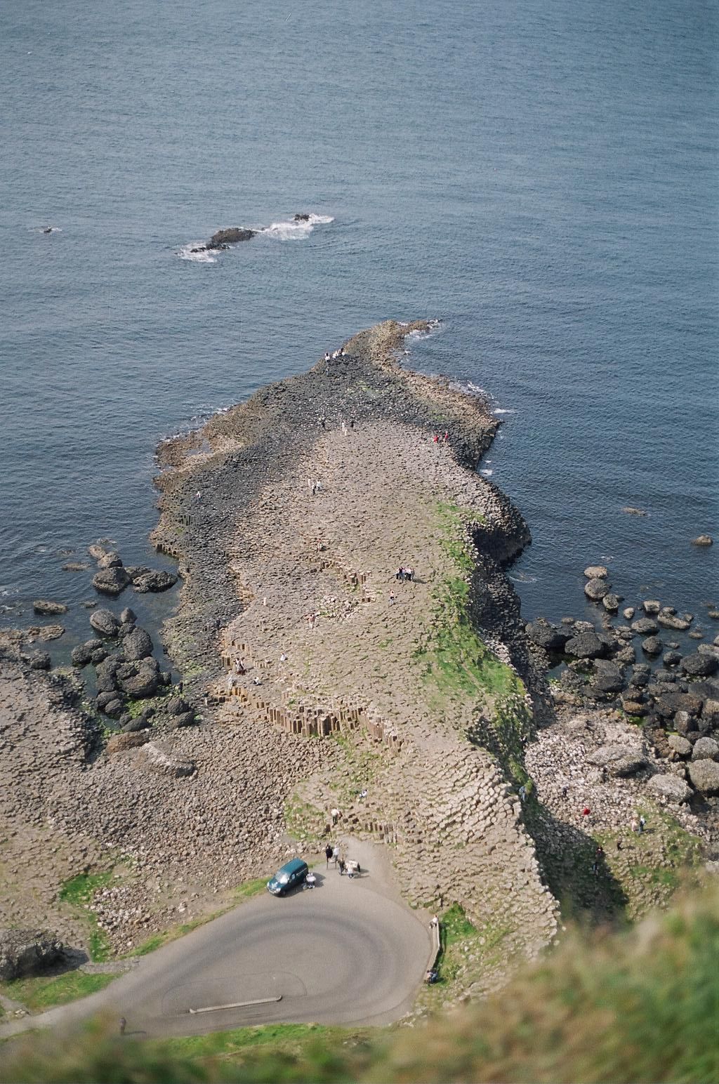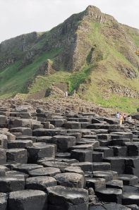 I took these photos when we visited the “Giant’s Causeway” in County Antrim, N. Ireland. It is one of those natural phenomena that you read about, but words can not really explain its beauty. Its magnificence has to be experienced, and you can only begin to see it when you stand at the top of the cliff (right) and then hike down to the the bottom (below) of this huge basalt stone formation.