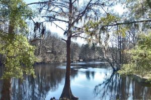 We saw lovely small towns. A cypress swamp with egrets and (I think) alligators. Farmland. Closed mills and the suffering of the infrastructure of the town (bad roads, abandoned buildings.) Zigging and zagging, we finally headed back towards I-95, only to discover one of the reasons the road was closed – a wild fire! By this morning, over 800 acres had burned and the visibility on I-95 and Route 74 was so bad that there were several fatal accidents…