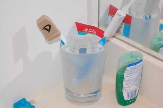 After I replaced the toothbrushes, I covered them. Apparently the new minty-fresh taste we just started using is cat-tastic in flavor. Interestingly, the girls have been covering theirs for some time… and never told us why…