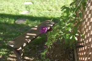 Climatis growing up part of our trellis. It is doing better this year, with more blooms and more vigorous growth, I think in part because the heat hasn’t started with a vengeance yet.