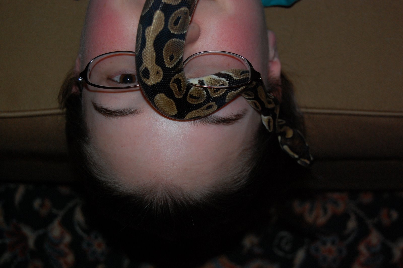 (and yes… she is upside down with a snake on her head.)