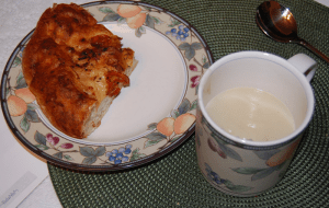 The finished product, served with tomato-basil focaccia bread: