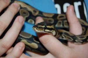 The Harpist has a pet snake named “Calvin” – (he’s into the Predestination of mice, in case you wondered.) While she is in Germany, Reedy Girl and I are caring for his bodily snaky needs which include food (we will buy mice later this week), water (daily), a nice warm lamp and rock to bask on or hide under.
