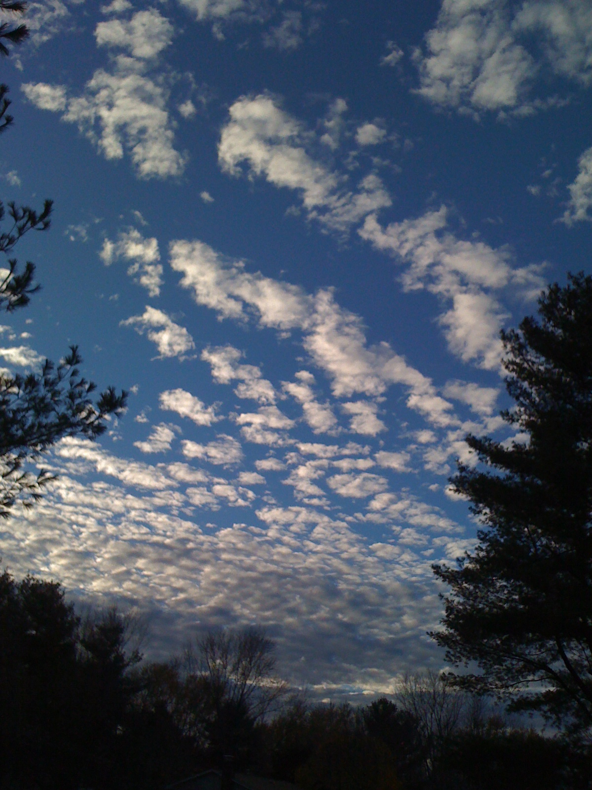 I love fast-moving clouds on a blue sky. Towards sunset tonight, this is what I saw!