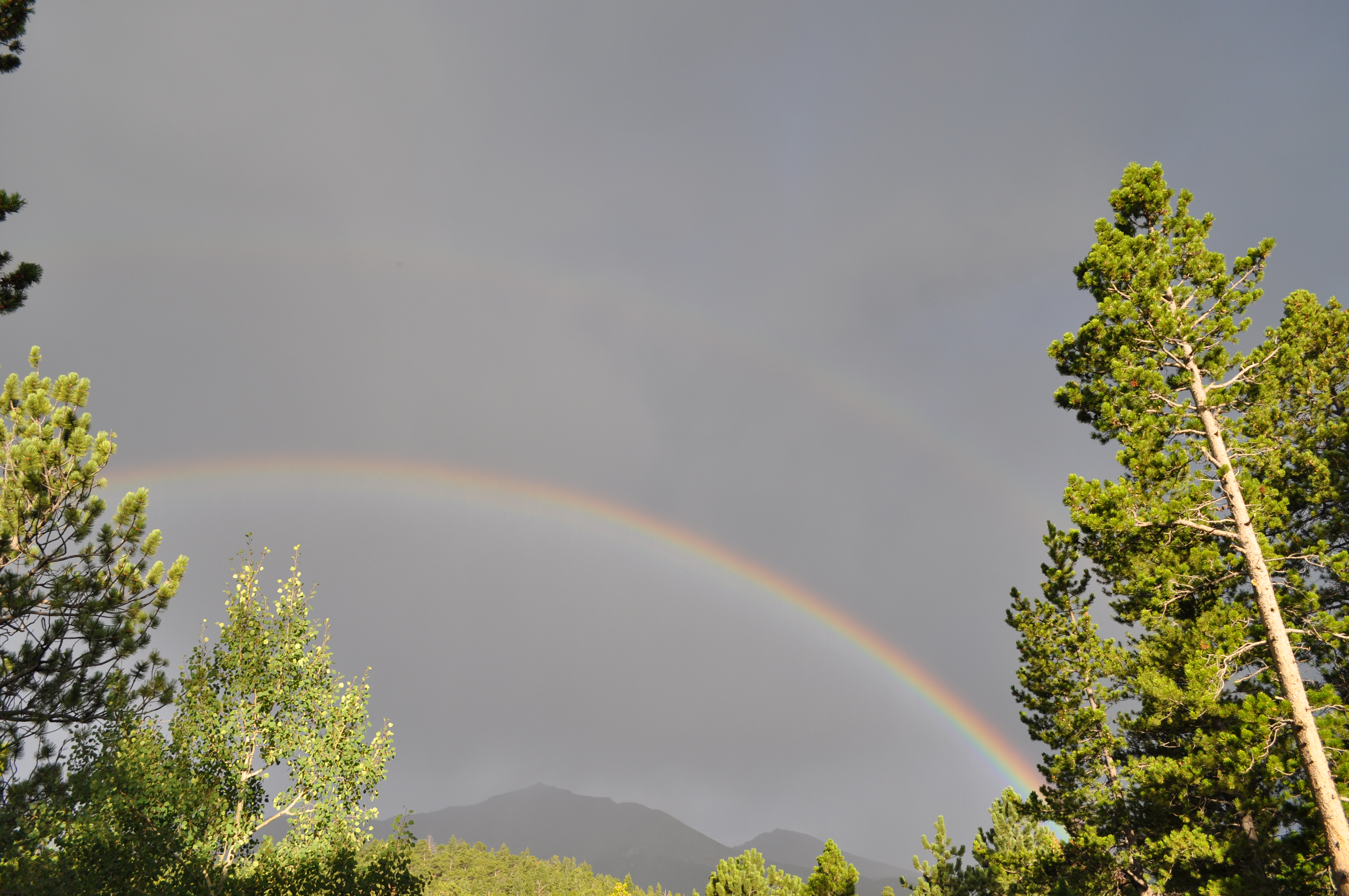 I was clicking through some of my photos from last summer’s trip to Colorado, and I came upon the one of the double rainbow. It’s the glimmer of hope I’m clinging to right now. I was reminded that only God sees the “end” of the rainbow. We see the refraction in the middle, but not the length of time it will last, the breadth of its span, the weather system and atmospheric conditions which cause it…