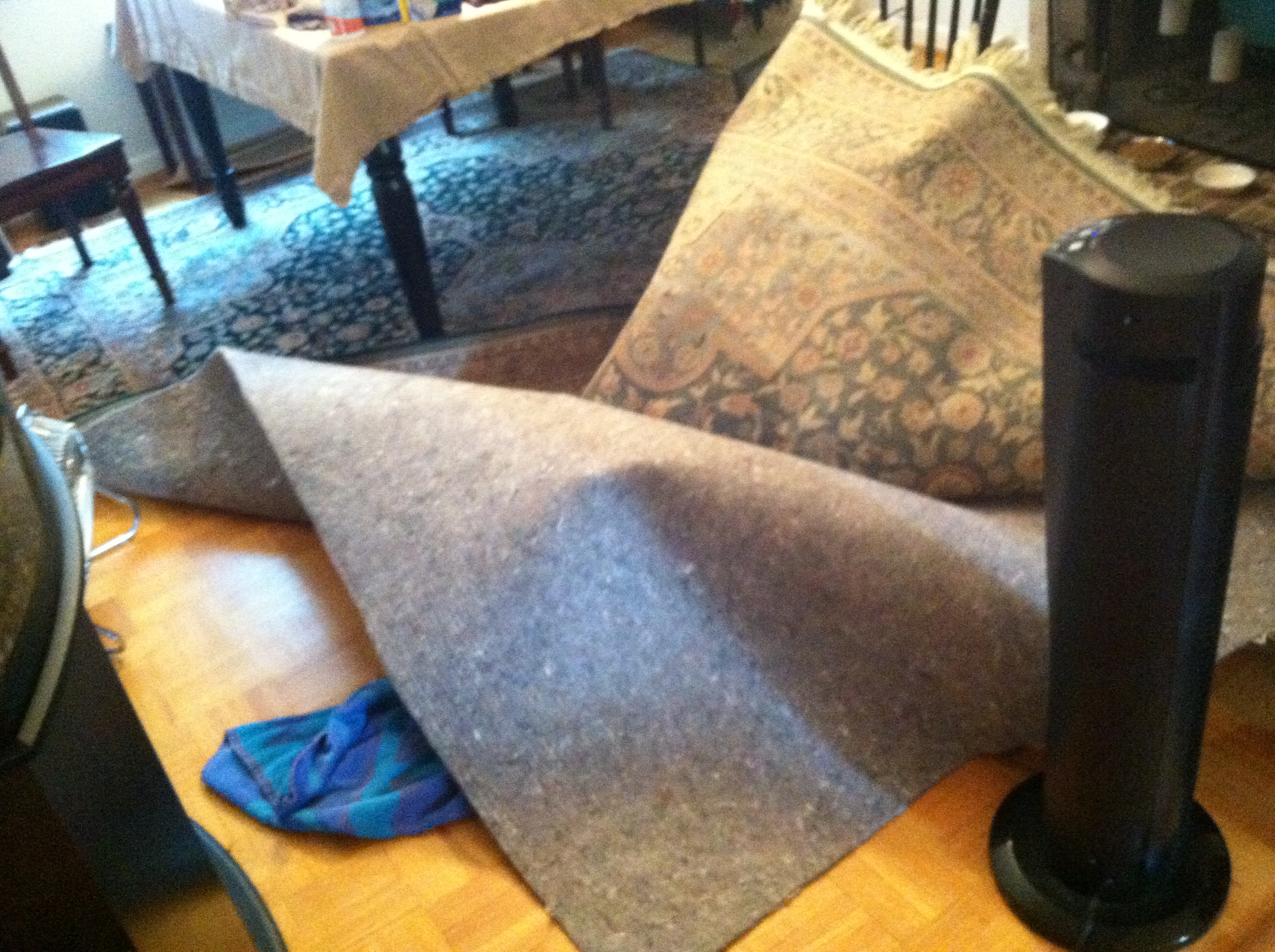 I finished the water change, cleaned up the mess, soaking and mopping up as much water as I could from the carpet. And then put two fans on the carpet and pad to try and dry them out.