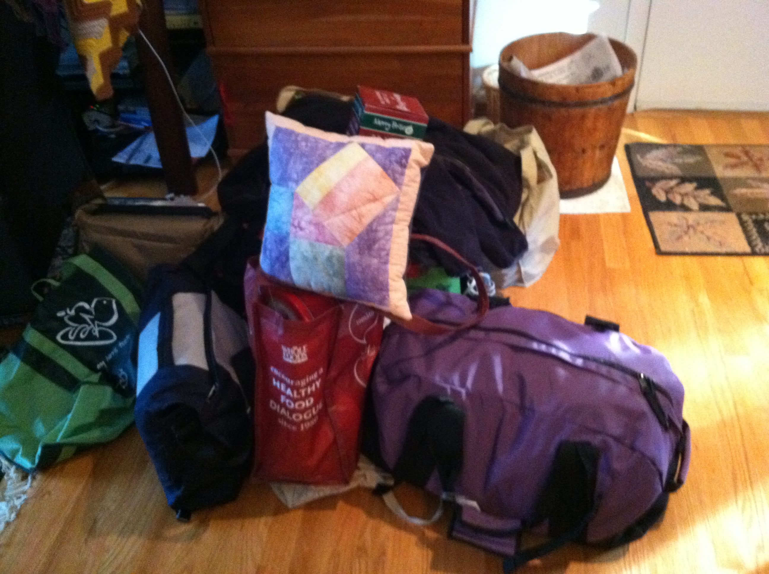 After a fun, busy weekend, the birds have flown the nest. This is a pile of some of the things that went out the door this afternoon. Clean laundry, leftover turkey, books and supplies, computers… they were more than ready to go back to their own haunts. It is as it should be. But in this going, it’s sometimes hard to see a turn of the calendar and a new season (for all of us!)