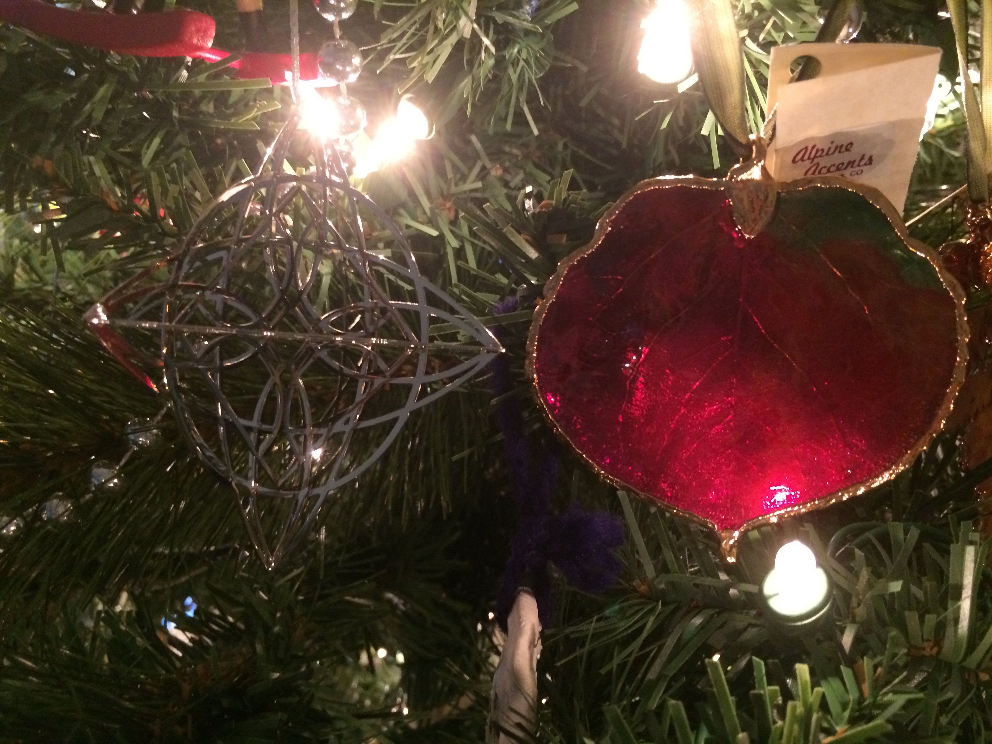 Oh my goodness… so many. There are hand-made ornaments from our daughters at various ages, and some beautiful etched glass made by one of my sisters.