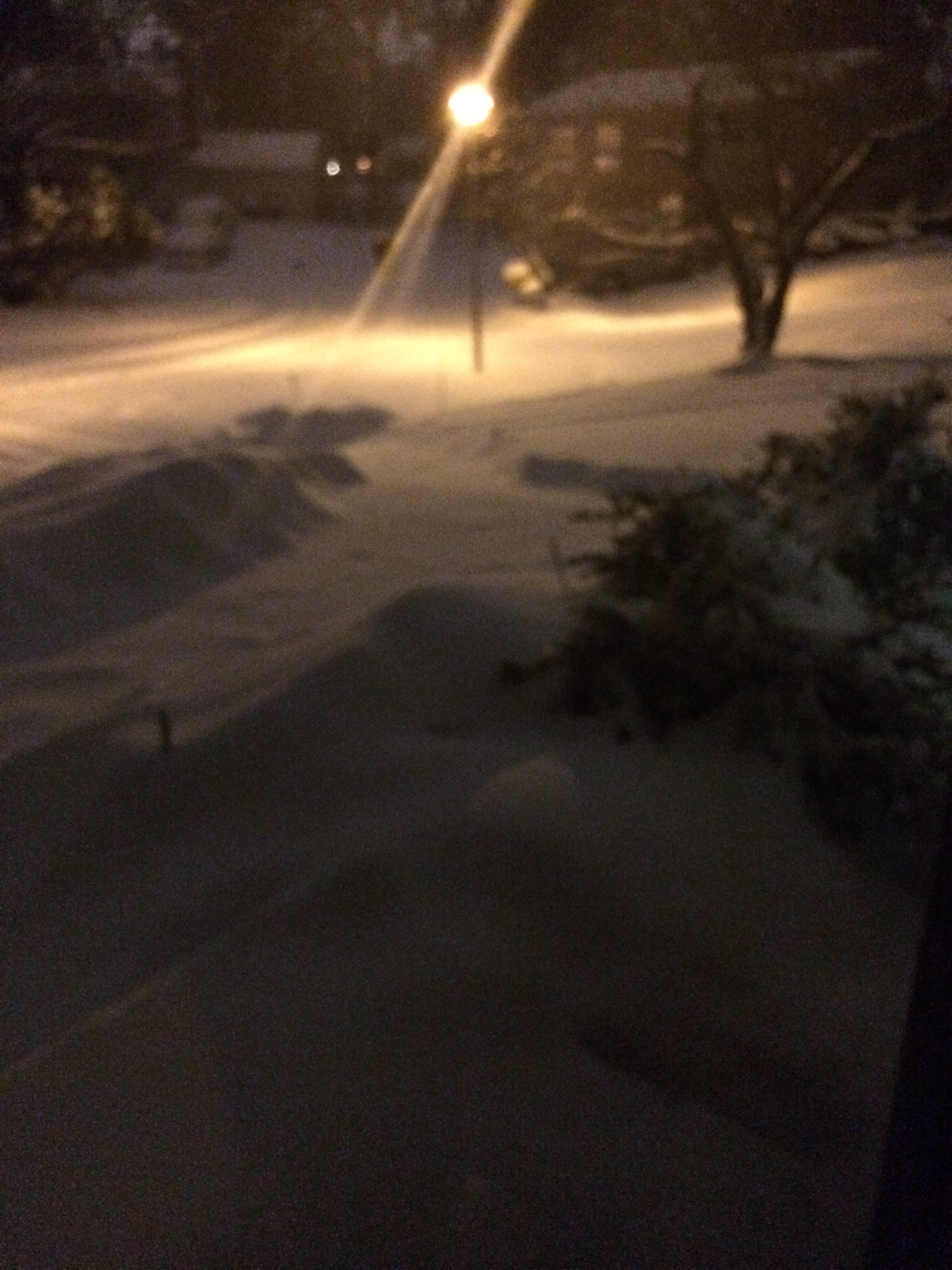 This is our front walk and driveway on a particularly snowy, blustery night.