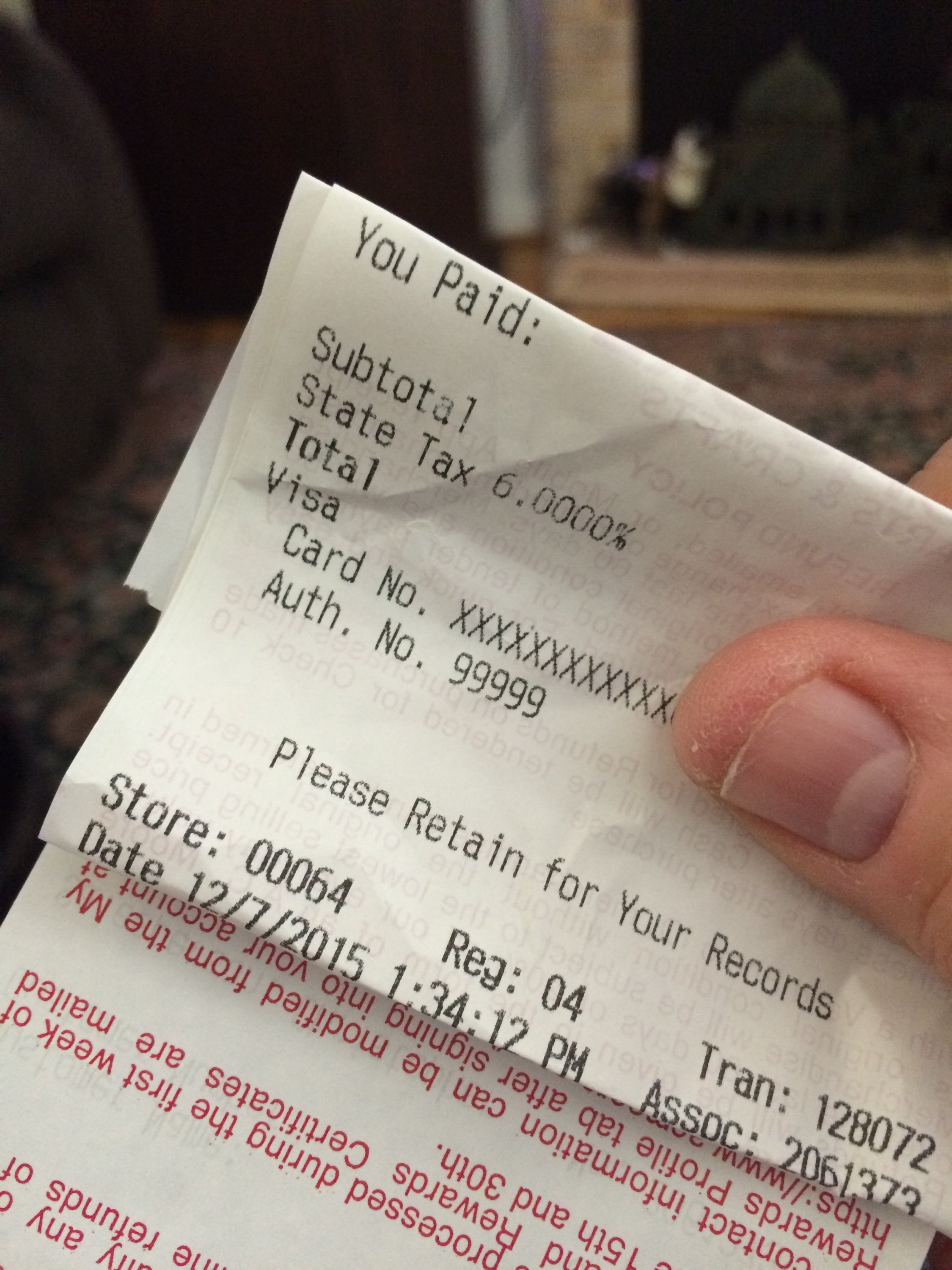 I stopped to pick up gift cards for the women’s shelter today. (And a few other items… Yarn was on sale…)
