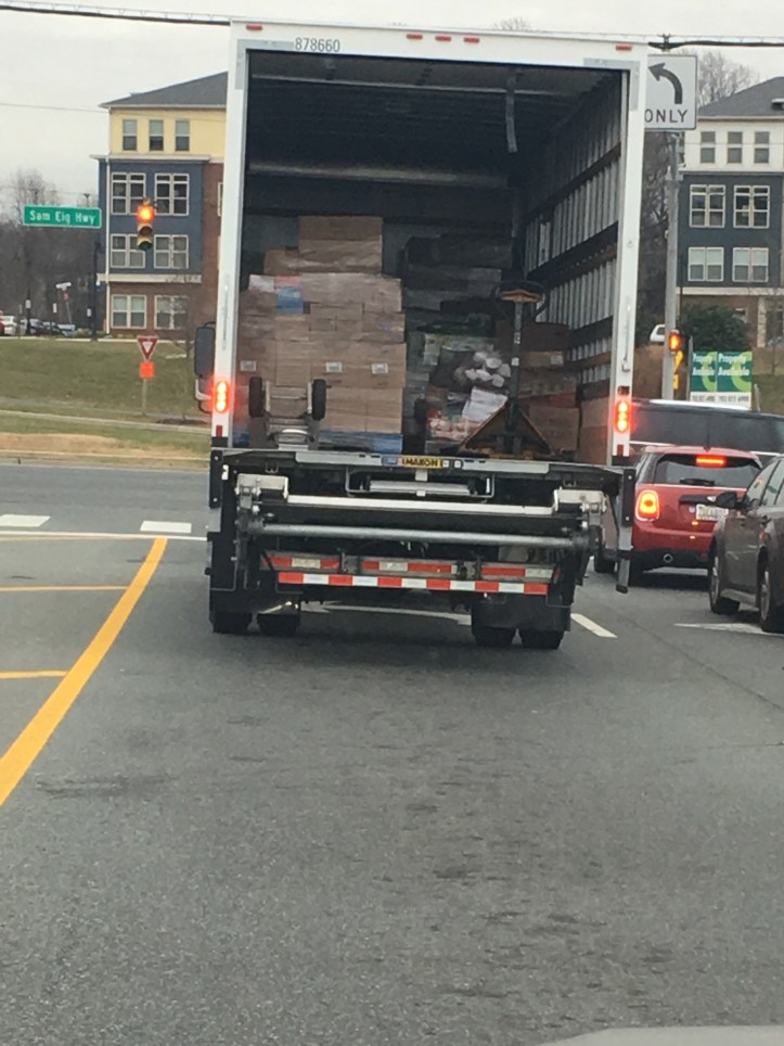 Some days you get by on a whole lotta luck. (And yes. I gave the truck a lot of space because doing the “hand truck slalom” was not on my to-do list today!)