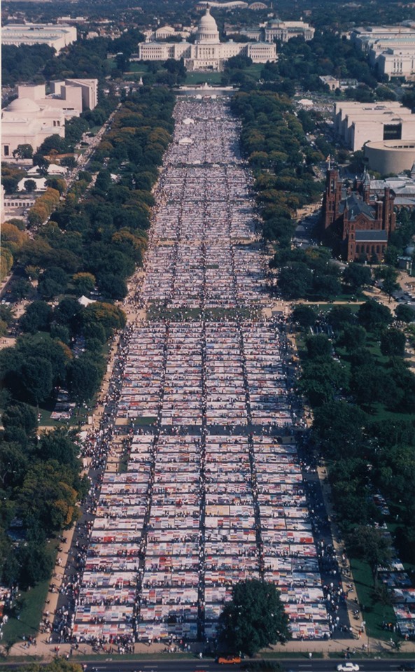 24 years ago I walked the mall with my 3 month old daughter in my sling. I had heard that The NAMES Project Quilt, a memorial of people who died from AIDS, would not be shown in its entirety again. I wanted to see it, so I packed a diaper bag and the baby, and headed down via Metro to the National Mall.