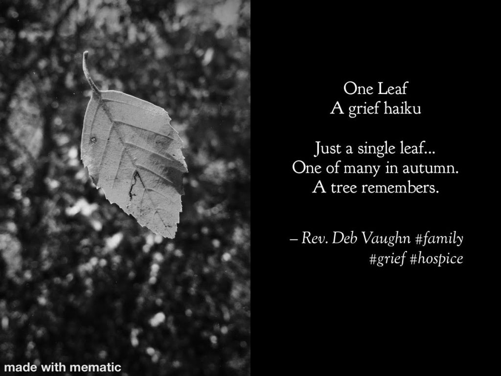 After a recent visit to one of my hospice patients, I got back in my car and noticed this leaf on my windshield. One single leaf, looking as though it was suspended in mid-air! A gentle breeze then blew it across the parking lot. A fleeting glance of that leaf reminded me to sit back and look up and cherish each moment. Hard times. Good times.And in the transition of experiences in between… in all of these, God is there.