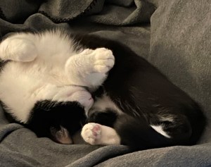 Our tree was wired up with a 3-point harness because of our parkour cat, Stewart. I put on the lights and candy canes… and never got the other decorations put up. (It’s probably just as well… Stewart knocked off more than one candy cane!) My one concession was a “pandemic angel” created for 2021.