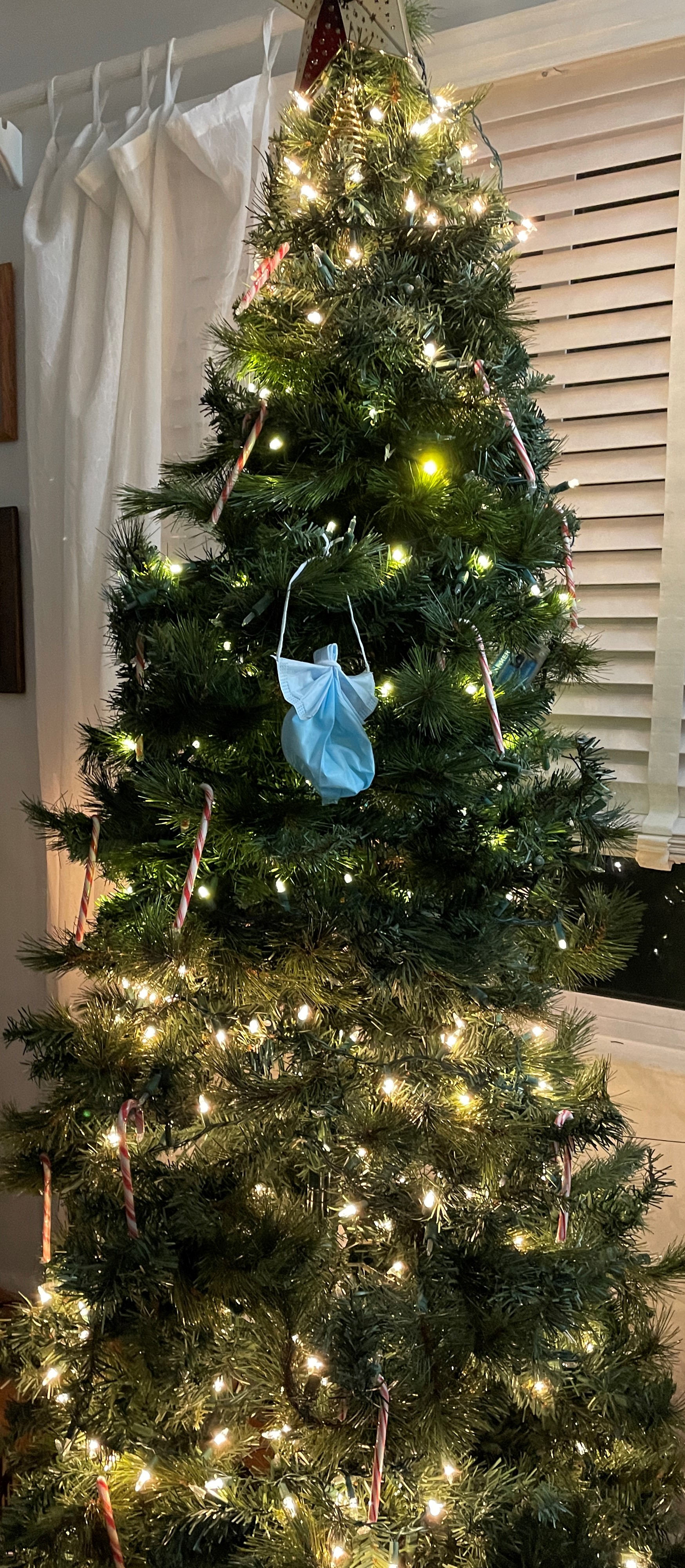 Last year you might remember I made a gaudily-decorated toilet paper roll. This year, masks (unused) seemed to be an appropriate decoration. So the “mask angel” came to be. I was amused remembering that as this year started, we were still re-using masks after letting them air-dry. We had to adjust to varying edicts on mask-on/mask-off from local officials throughout the year. And learn to tune out the pontificating by TV anchors and political pundits over “personal rights” and “the land of the free…” when mask mandates were enforced on public transportation such as airplanes.