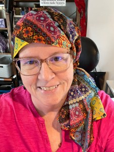 My scan completed, I headed out to do the last bit of paperwork, pick up a CD of the images, and go home and eat some breakfast. Another cancer patient was in the waiting area, drinking her vile brew. She has been on this journey for 7 years. We clinked ice cups and talked briefly. She’s on a 6 month follow-up regimen now. As I headed out the door, she called out, “Hang in there. Next time, I’ll see you with more hair!”