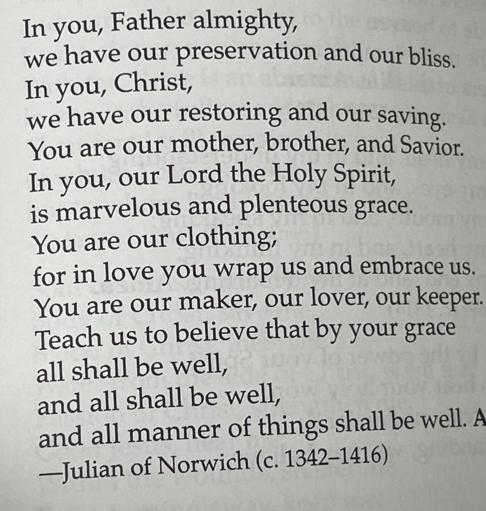A church elder came by and prayed with us a prayer from Julian of Norwich, one of my favorites…