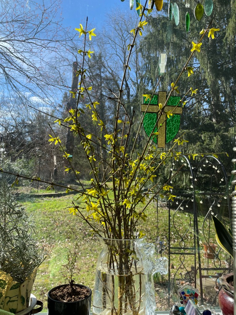 The forsythias on my windowsill remind me of the slow growth and change in my heart and my life. It’s not a pretty journey. It’s pretty raw at times, actually! As I tackle today’s work, today’s tasks, today’s memories… I do so with the knowledge that I have Divine energy and wisdom to do it. And I am blessed with family and friends for the road. And that is enough for the next steps of my journey.