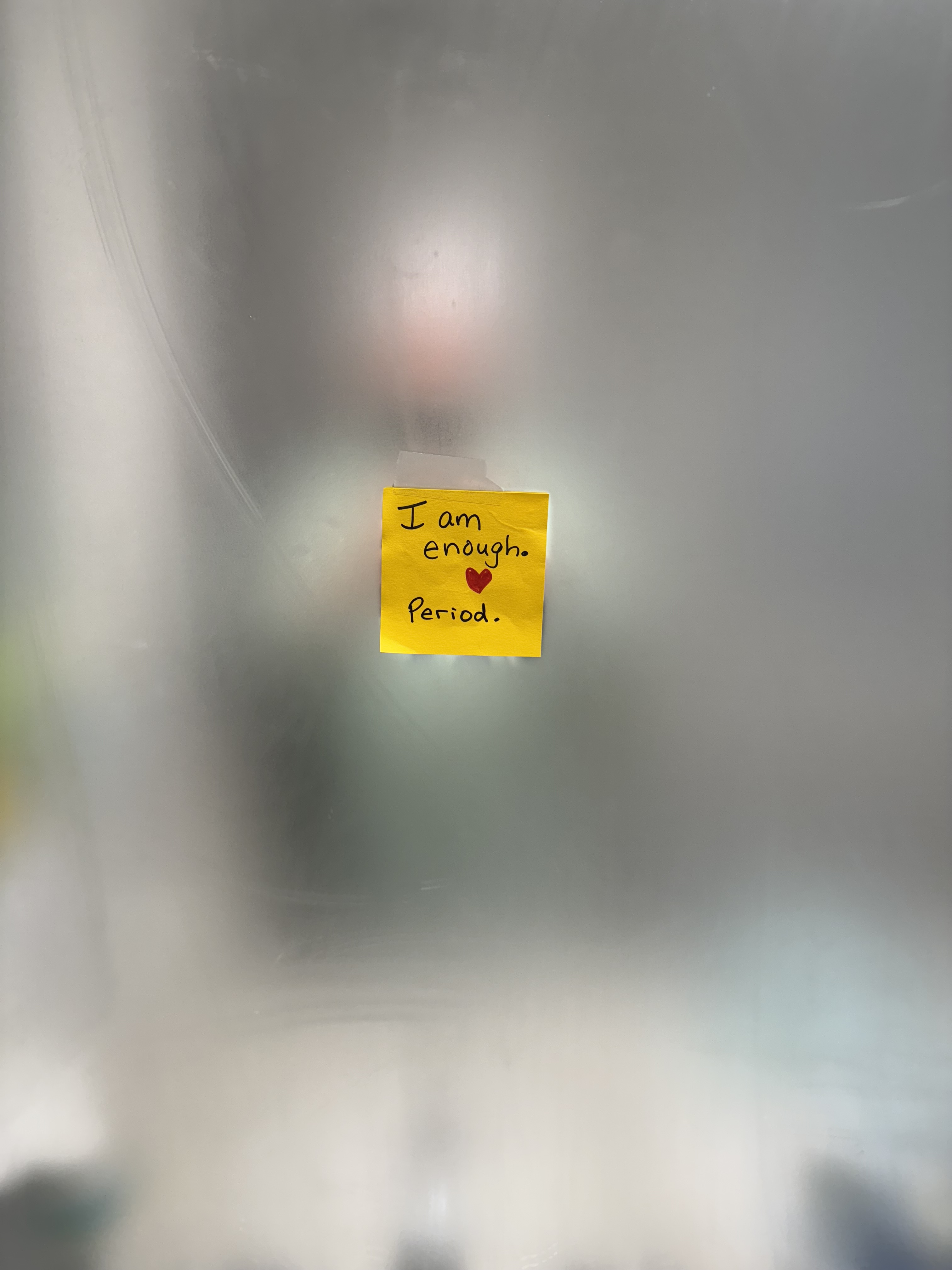“I AM ENOUGH. PERIOD” reads the sticky note on my bathroom mirror. It’s there for a number of reasons. To fight imposter syndrome. To remind me Who made me and Whose I am. To take off some of the pressure (that I put on myself.) To let go of questions that are not mine to answer, and being content to live in that space of “now and not yet.” And most of all, to remember what one of my mentors says, “God don’t make no junk.”