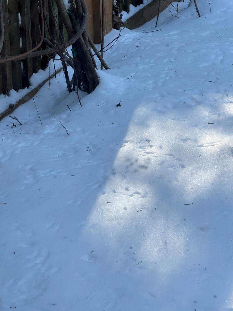 Watching the little bird tracks all over my yard intrigued me. The littlest of feet transformed a whole landscape. The purest of situations marred by every bird wanting to be “head bird.”